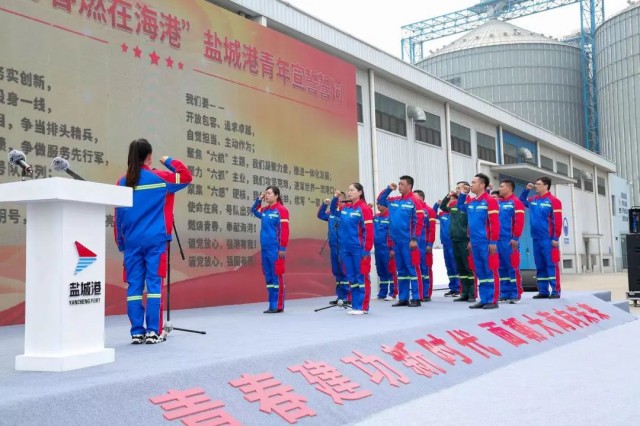 活動(dòng)中,與會(huì)領(lǐng)導(dǎo)為12個(gè)圍繞服務(wù)重大項(xiàng)目而組成的青年集體突擊隊(duì)進(jìn)行授旗,青年突擊隊(duì)、青年文明號代表作表態(tài)發(fā)言,并舉行了“強(qiáng)國復(fù)興有我 青春燃在海港”鹽城港青年宣誓儀式。