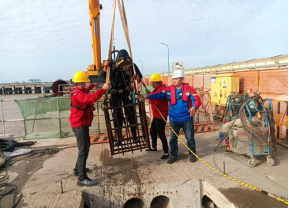 事出緊急,胡吟來(lái)不及思考,即刻號(hào)召黨員突擊隊(duì)組織現(xiàn)場(chǎng)人員有序撤離,并對(duì)現(xiàn)場(chǎng)設(shè)備、機(jī)械進(jìn)行加固,起重機(jī)大臂收回,集裝箱、鋼護(hù)筒采用纜繩與臨時(shí)焊接的鋼筋綁牢固定。短短數(shù)小時(shí)內(nèi)便完成了現(xiàn)場(chǎng)的加固工作,確保了此次強(qiáng)對(duì)流天氣的順利度過(guò)。
