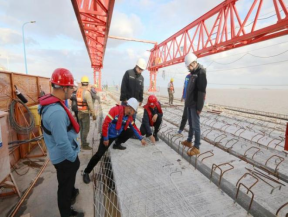 “今日已完成P72-76南半幅護(hù)輪坎澆筑、P22橫梁舊橋板切割拆除、P26/27南半幅橫梁鋼筋綁扎立模、P38/C鉆孔、P36/C沖擊鉆引孔、P32/62排架水下清障以及P67-68預(yù)制空心板安裝共計(jì)七項(xiàng)工作,無(wú)安全隱患發(fā)生?!?/p>