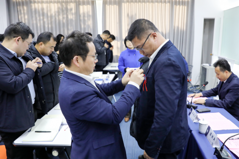 典禮上,吳先華院長為學(xué)員代表佩戴?;?,吳先華、梁洪兵共同為鹽城港集團代表授予班旗,這也代表鹽城港的各位學(xué)員正式加入上海海事大學(xué)的大家庭。