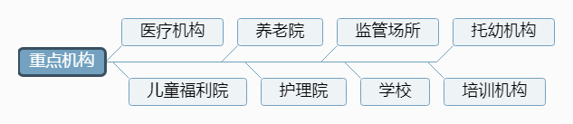 4.“重點(diǎn)機(jī)構(gòu)”:新冠肺炎疫情期間,容易暴發(fā)聚集性疫情的機(jī)構(gòu),包括醫(yī)療機(jī)構(gòu)、兒童福利院、養(yǎng)老院、護(hù)理院、監(jiān)管場(chǎng)所、學(xué)校、托幼機(jī)構(gòu)、培訓(xùn)機(jī)構(gòu)等。