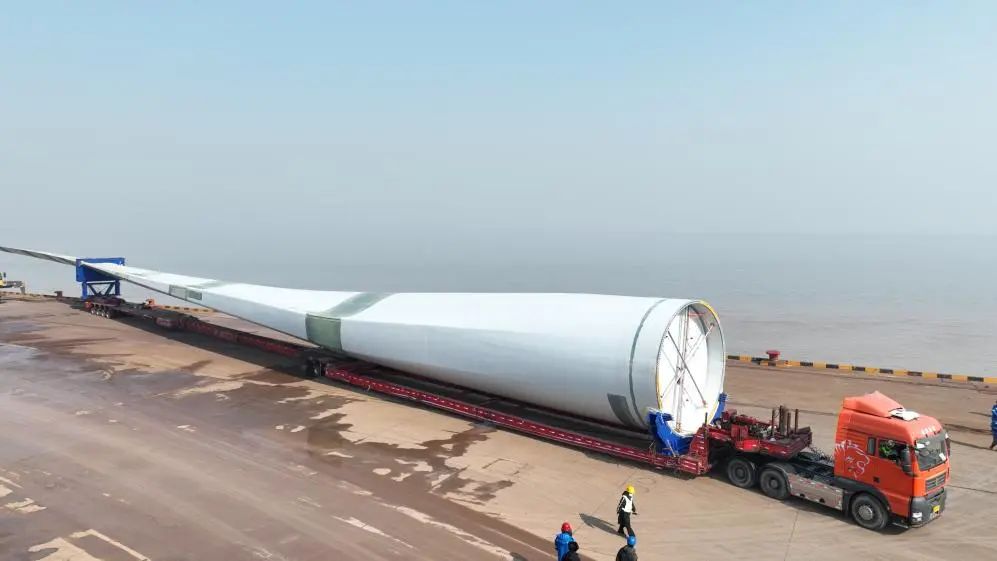 147米!國(guó)內(nèi)最長(zhǎng)葉片在鹽城港大豐港區(qū)順利吊裝