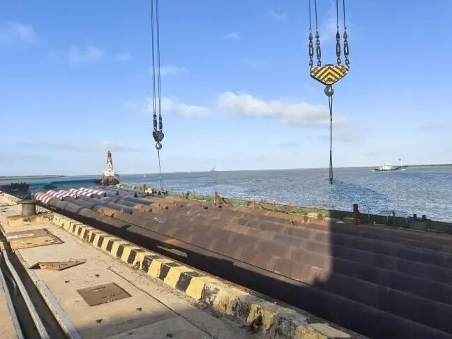 面對(duì)密集到港船舶和緊張船期,港區(qū)科學(xué)統(tǒng)籌作業(yè)資源,優(yōu)化物流組織,通過(guò)整合路線、強(qiáng)化聯(lián)運(yùn)、推廣直取直裝等方式,打通銜接堵點(diǎn),實(shí)現(xiàn)“車(chē)船直裝、貨不落地”的高效轉(zhuǎn)運(yùn)模式。近日,光伏管樁項(xiàng)目第8船作業(yè)圓滿完成,展示了港區(qū)高效協(xié)同、精準(zhǔn)作業(yè)的硬核實(shí)力,為后續(xù)新業(yè)務(wù)開(kāi)展樹(shù)立了標(biāo)桿。