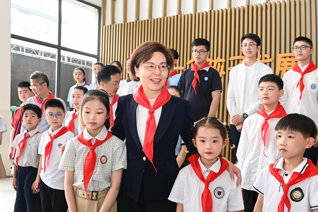 串場河小學(xué)傳承百年一小文化,集國家級等20多項榮譽(yù)一體。在“紅領(lǐng)巾向未來”主題活動墻前,徐纓仔細(xì)觀看孩子們提出的“金點(diǎn)子”“好提案”,給同學(xué)們關(guān)心家鄉(xiāng)發(fā)展的行為點(diǎn)贊,要求相關(guān)部門高度重視孩子們的意見建議,暢通溝通渠道、高效推進(jìn)落實(shí),讓美好愿望變成現(xiàn)實(shí)圖景。
