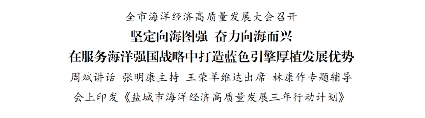 會上,印發(fā)了《鹽城市海洋經(jīng)濟高質(zhì)量發(fā)展三年行動計劃》及有關(guān)政策措施,有關(guān)部門和地區(qū)作交流發(fā)言。