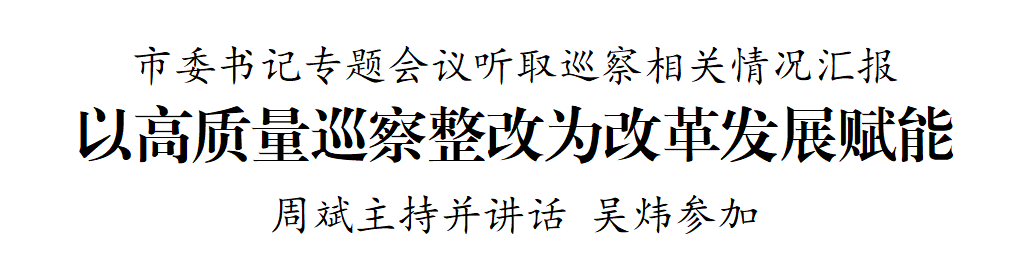 7月10日,市委書記周斌主持召開市委書記專題會(huì)議,深入學(xué)習(xí)領(lǐng)會(huì)習(xí)近平總書記關(guān)于黨的自我革命的重要思想和巡視工作的重要論述,聽取八屆市委第七輪巡察、第三輪巡察整改督查評(píng)估和近幾輪巡察整改日常監(jiān)督情況匯報(bào),研究下一階段巡察工作。市委副書記吳煒參加。